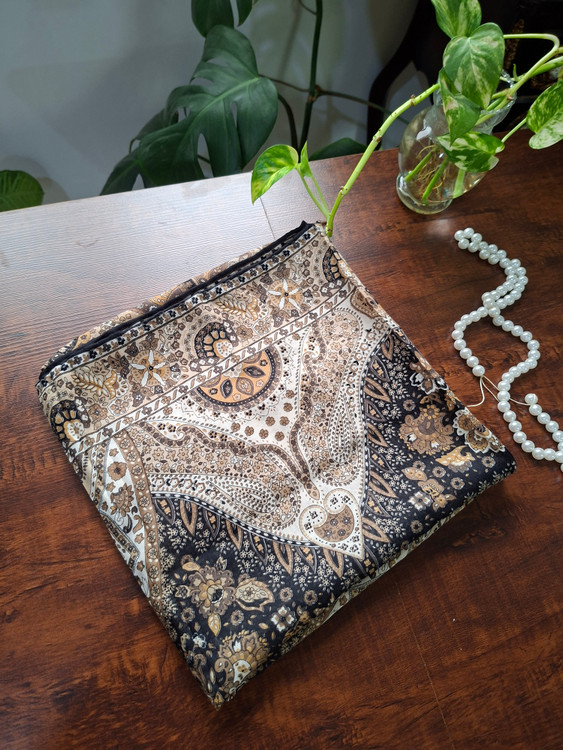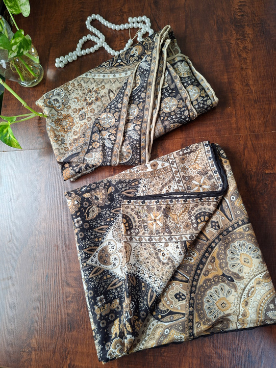 روسری زنانه عرض ۱۱۰، جنس حریر نخ، دور دست دوز