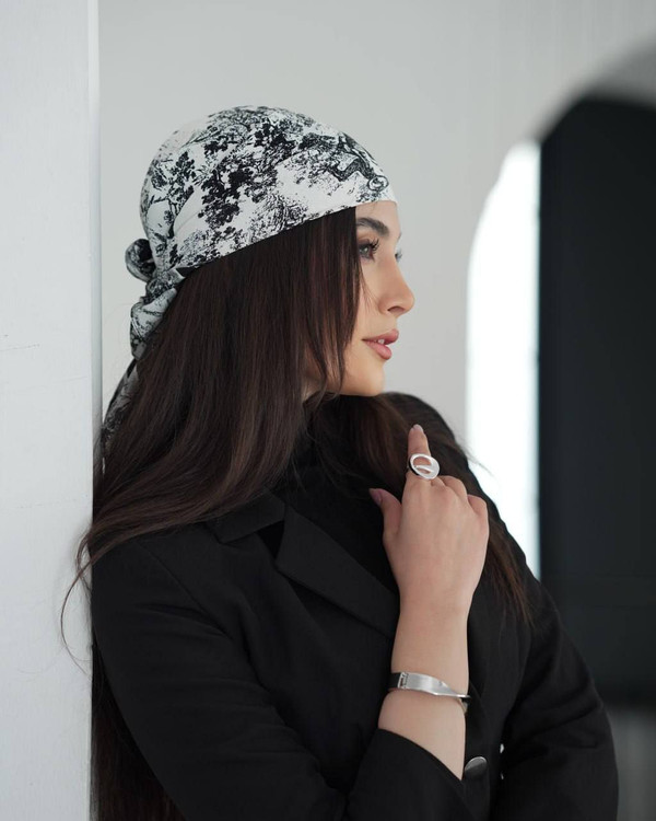 مینی اسکارف طرح جنگل مجلسی،از جنس نخ ابریشم بوده، بسیار لطیف و زیبا میباشد، رو سر لیز نمیخورد