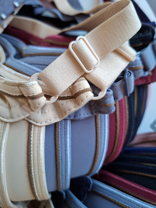 سوتین اسفنجی کاپ B زنانه وارداتی کاری بسیار با کیفیت و درجه یک بوده که دارای فنرهای منعطف از جنس پلاستیک میباشد، دستک ها از جنس فلز و بند تنظیم کننده محکم که دارای رانر هایی از جنس پلاستیکی میباشد. ای کار فاقد جک یا پروتز میباشد.