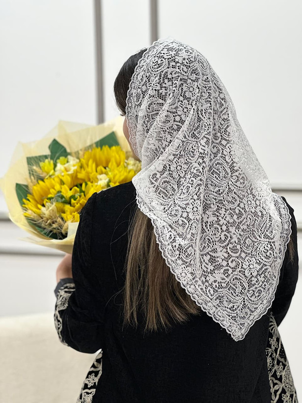 روسری سه گوش گیپور دوردانتل، بسیار زیبا و جذاب میباشد گیپور کار بسیار نرم و لطیف بوده ، روی سر سُر نمیخورد ،بلندترین ظلع این روسری سه گوش، ۱۱۸ سانت میباشد اظلاع دیگر این سه گوش ۹۰ سانت طول دارد. هر سه ظلع این روسری دادای دانتل میباشد. این مدل روسری کاری بسیار شیک برای مجالس و میهمانی میباشد.دارای هفت رنگ، سورمه ای، قهوه ای، مشکی، سفید، نسکافه ای ، زرشکی و کرمی است.