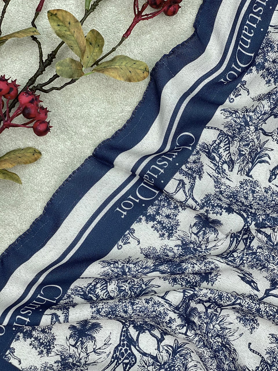 مینی اسکاف( ۶۷×۶۷) طرح جنگل ،کریستین دیور لمه دار بهاره، یک مینی اسکارف مجلسی از جنس کرپ نخ لمه دار بوده، روی سر سُر نمیخورد، لمه های زر موجود در تارهای آن نمای بسیار زیبایی به این مینی اسکاف داده است که باعث میشود بتوان از آن در مجالس و میهانی ها و جلسات مهم از آن استفاده کرد.ضد چروک بوده و قواره کار ۶۷ در ۶۷ میباشد.