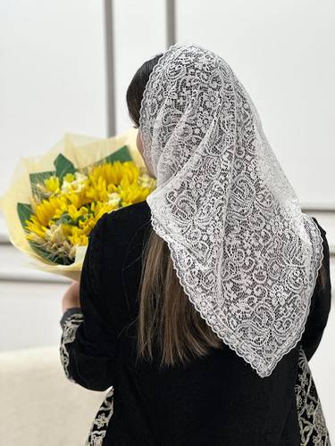 مینی اسکارف توری ۴گوش طرح بابونه با حاشیه دانتل